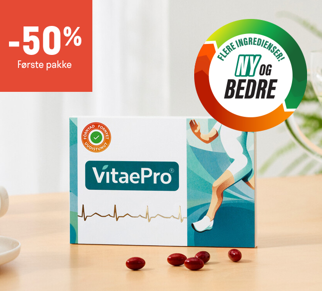 Som ny kunde sparer du 50% af prisen i de første 6 uger og betaler kun 169,- for 44 VitaePro-kapsler.